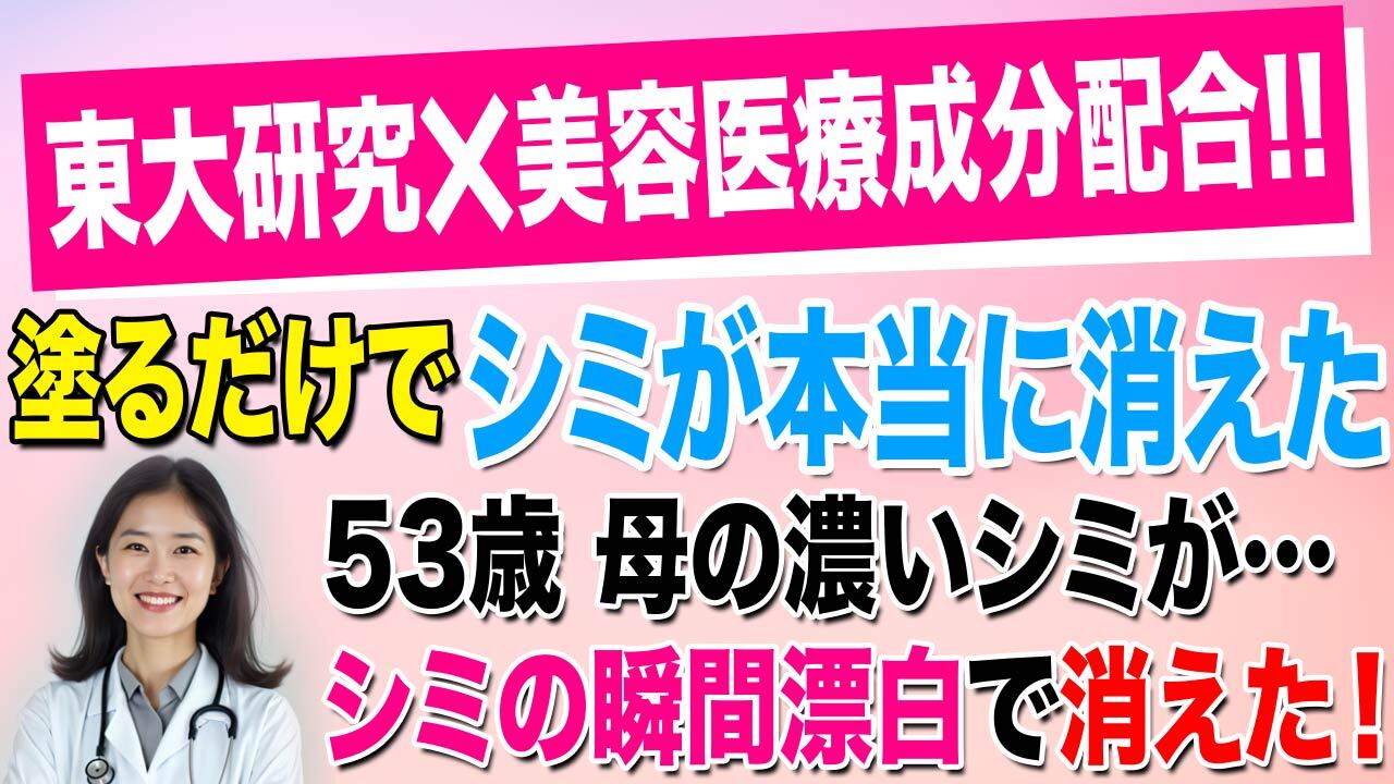 テレビでも放送され、美容皮膚科医も注目しているだけあって、試してみると見事!こんなに簡単にシミが消えて、肌も綺麗になるなんて夢のようです!
